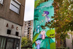 A Színes Város Csoport a Vuk szereplőit ábrázoló falfestmény után