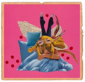 Lakner Zsuzsa kollázsa. Kollázsblogja itt található.Leszállt az éj, gyorsan jött ma a sötétség, s hamarost lett öregeste a szobában. Mámi nem tudta pontosan megítélni, rossz volt a szeme, pedig szűkítette is, hogy jobban lásson. Lassan forgatta a fejét, karmos végű, tapadókorongos lábaival óvatosan araszolt előre a szűk résben, a Révai Nagylexikonban. Ez volt a kedvenc könyve, dohos lapjai között érezte igazán otthon magát. Lassan két éve már, hogy beleköltözött,